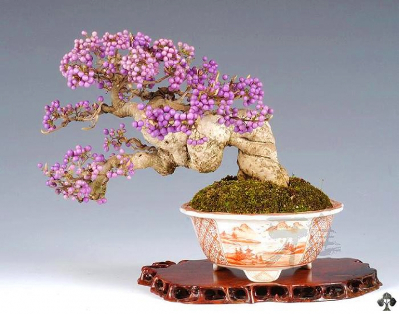 Japanese Beautyberry & other Fruiting Bonsai 7/8/18 This brilliant little Japanese beautyberry (Callicarpa japonica) is well named indeed (it's nice when the name of a plant says something about how the plant looks; an onamonapia of sight). I found this photo on Bonsai Empire They attribute it to AR...