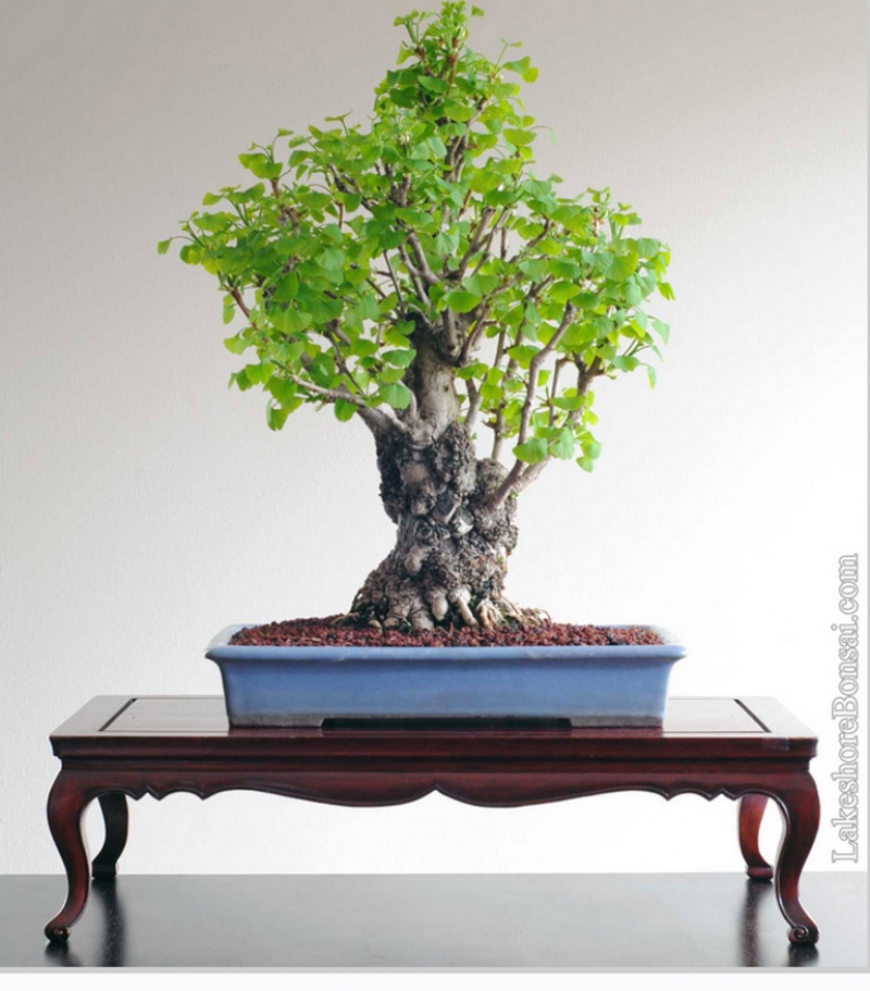 Ginkgo Bonsai – Spring, Summer & Fall 10/8/18 I'm not so sure about the apex or the way it's so crowded in this photo, but I like the tree anyway. Especially that gnarly old trunk. It's a Chi Chi, a small leaf Ginkgo cultivar. As you can see, it's from Lakeshore Bonsai (Toronto area). Here's Lakes...