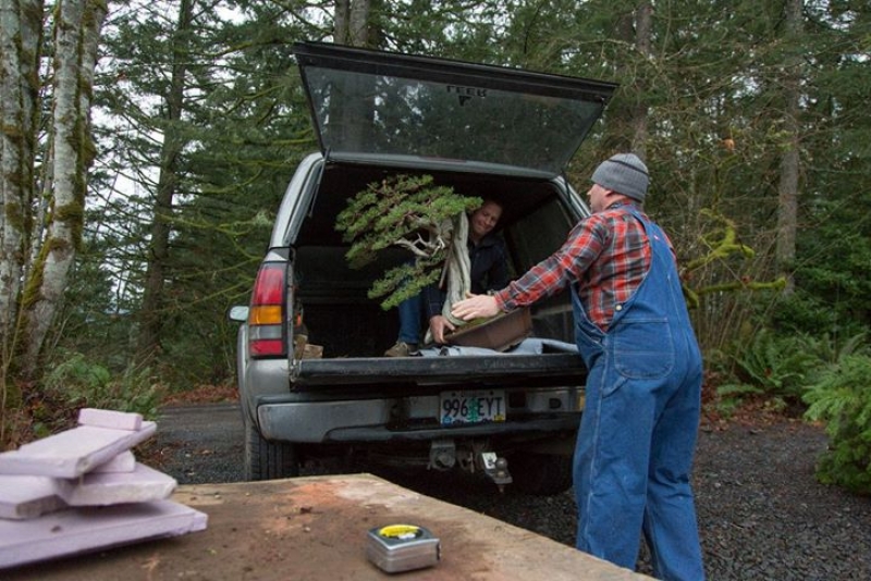 Ryan and Troy loaded up the recently restyled historic Harry Hirao California Juniper this morning. It is headed North, back to its home at the Pacific Bonsai Museum in Tacoma, WA.