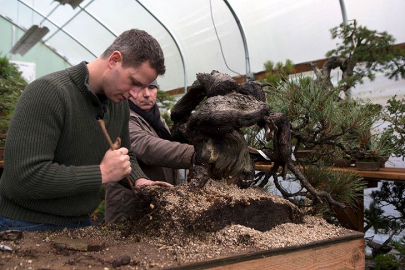 A couple behind-the-scenes images from our Monday here at Mirai! Preparing for tomorrow's stream by beginning our repot of our wild Ponderosa Pine. We also brought in the Spruce from last week's BSOP stream for formal documentation.