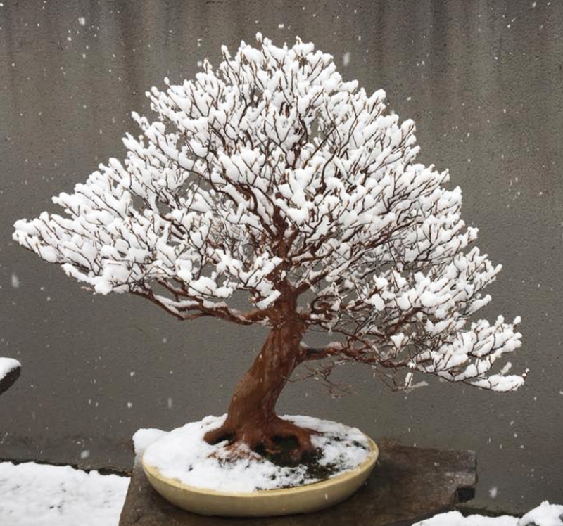Snow Flowers 2/22/18 Snow flowers at the Luis Vallejo's Museo De Bonsais Alcobendas. The tree looks like it could be a Stewartia. Yesterday we enjoyed a touch of false spring in Northern Vermont. But winter never gives up this early, so we’ll have to wait a couple more months for the real thing. M...