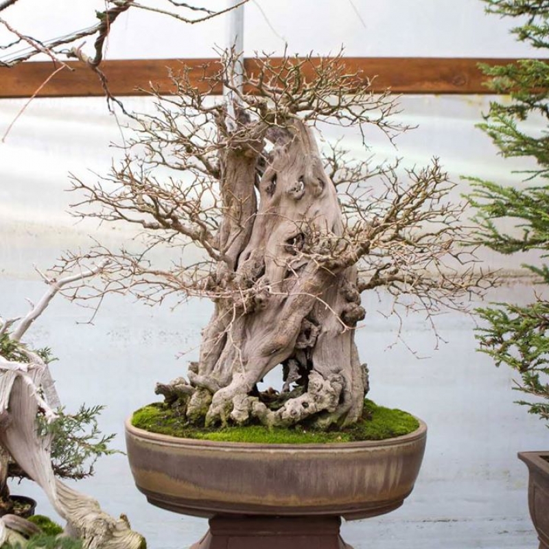 Pomegranate is a Mediterranean species of tree with limitless ornamental value. Their bare winter silhouette and twisted trunks generate incredible interest in their leafless state. In the spring, tiny red buds emerge from a seemingly lifeless carcass, breathing brilliant color into the rugged structure and calling forth bright orange flowers that hint at the eventual fruit to come. With fall, a brilliant yellow color marks the final crescendo of the growing season. These trees are wonderful for bonsai.