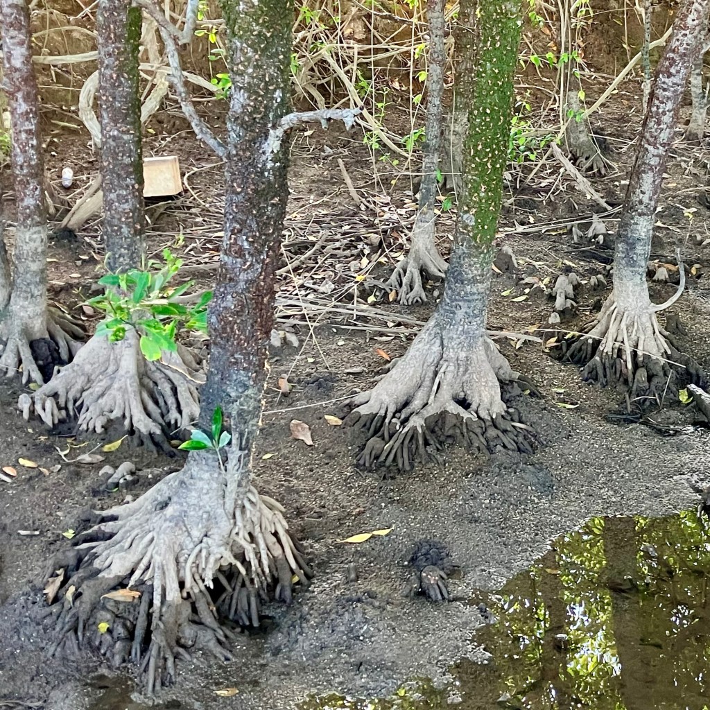 Impressive root flares help stabilize these tree mangroves in the mud.