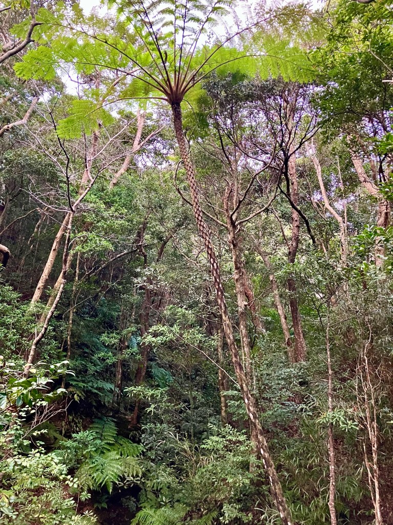 Laurels and tree fern. Okinawa is subtropical, around 60 F this time of year. This is the dry season.