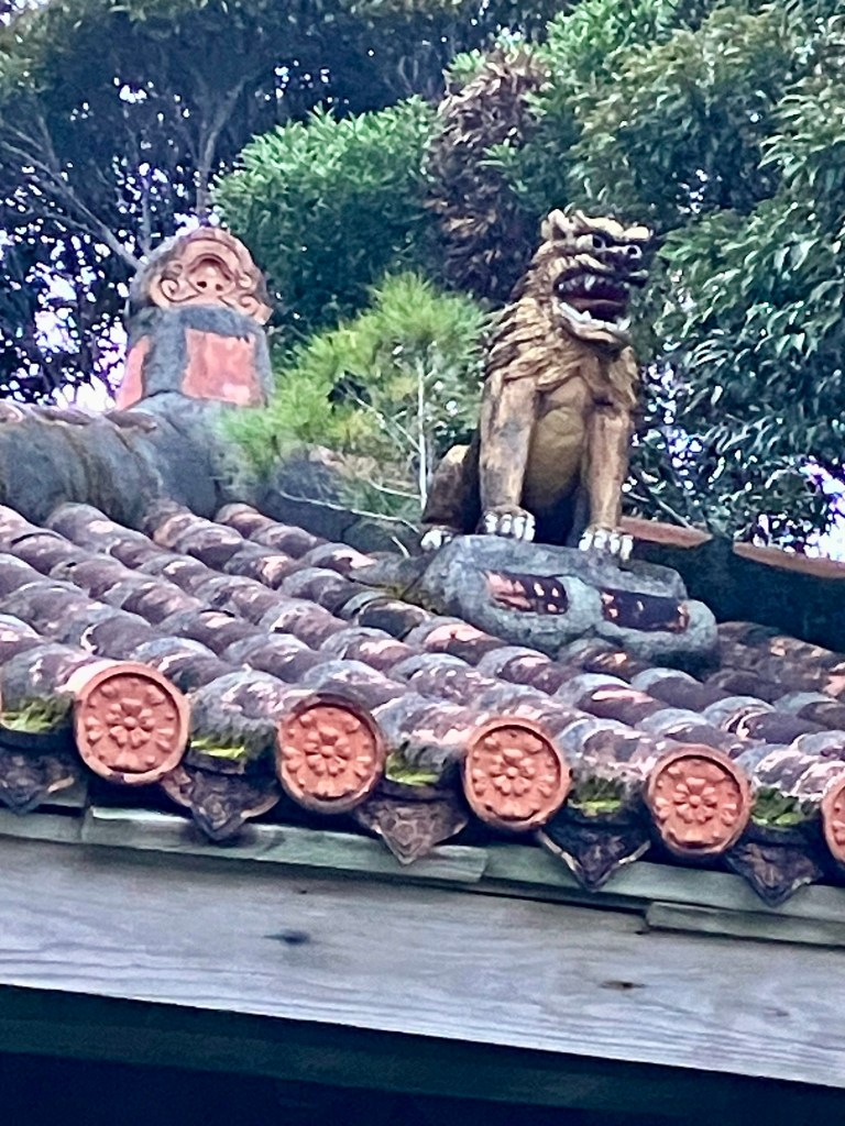 A protector deity on a roof. Behind the lion grows a sapling pine, I think a Ryukyu Pine. “Ryukyu” is the name of the sea-trading Okinawan culture that dates back thousands of years.