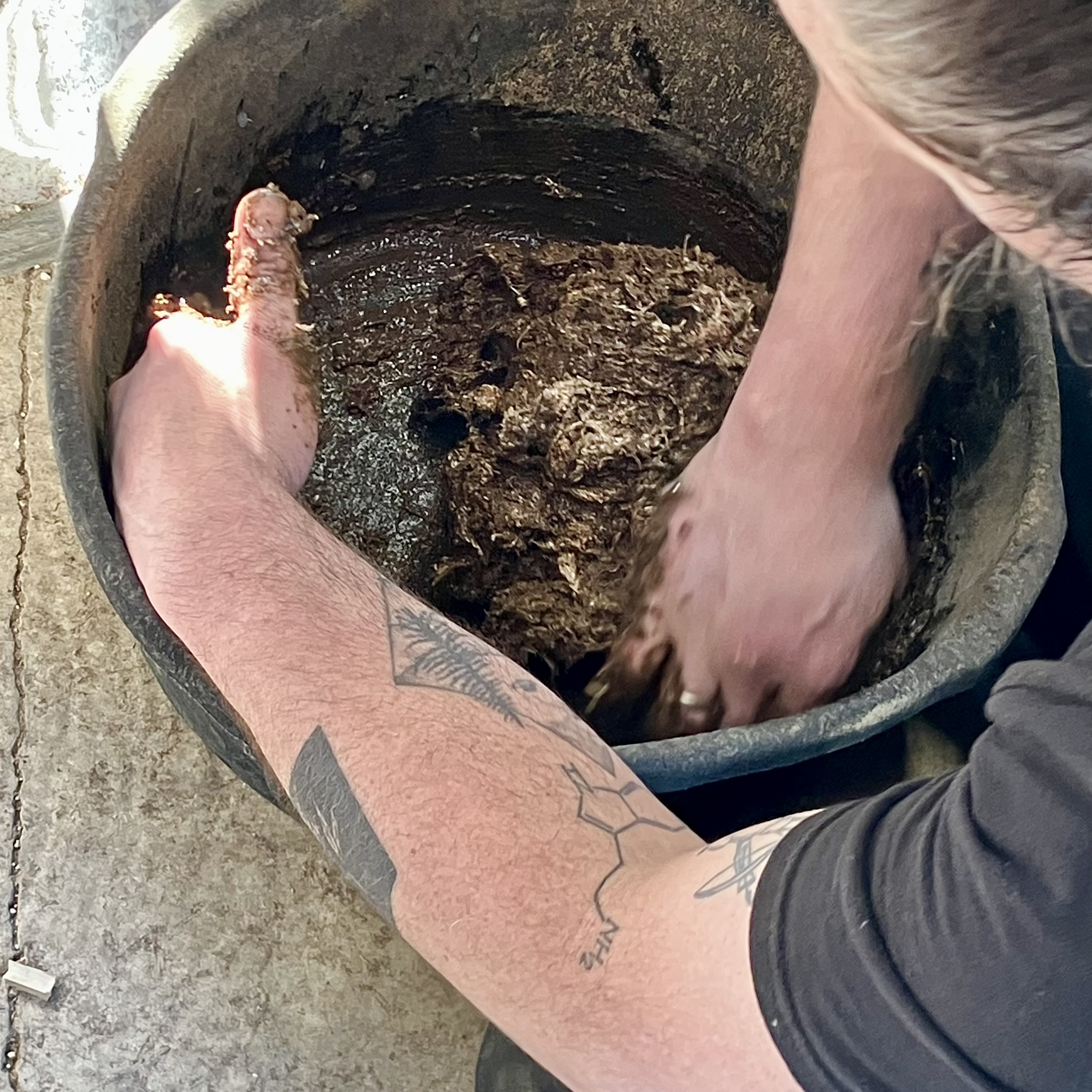 Mixing the muck.